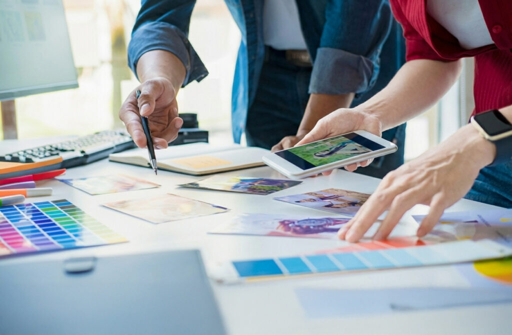 Four-color and spot-color printing, prepress, vendor coordination, and press-ready files.